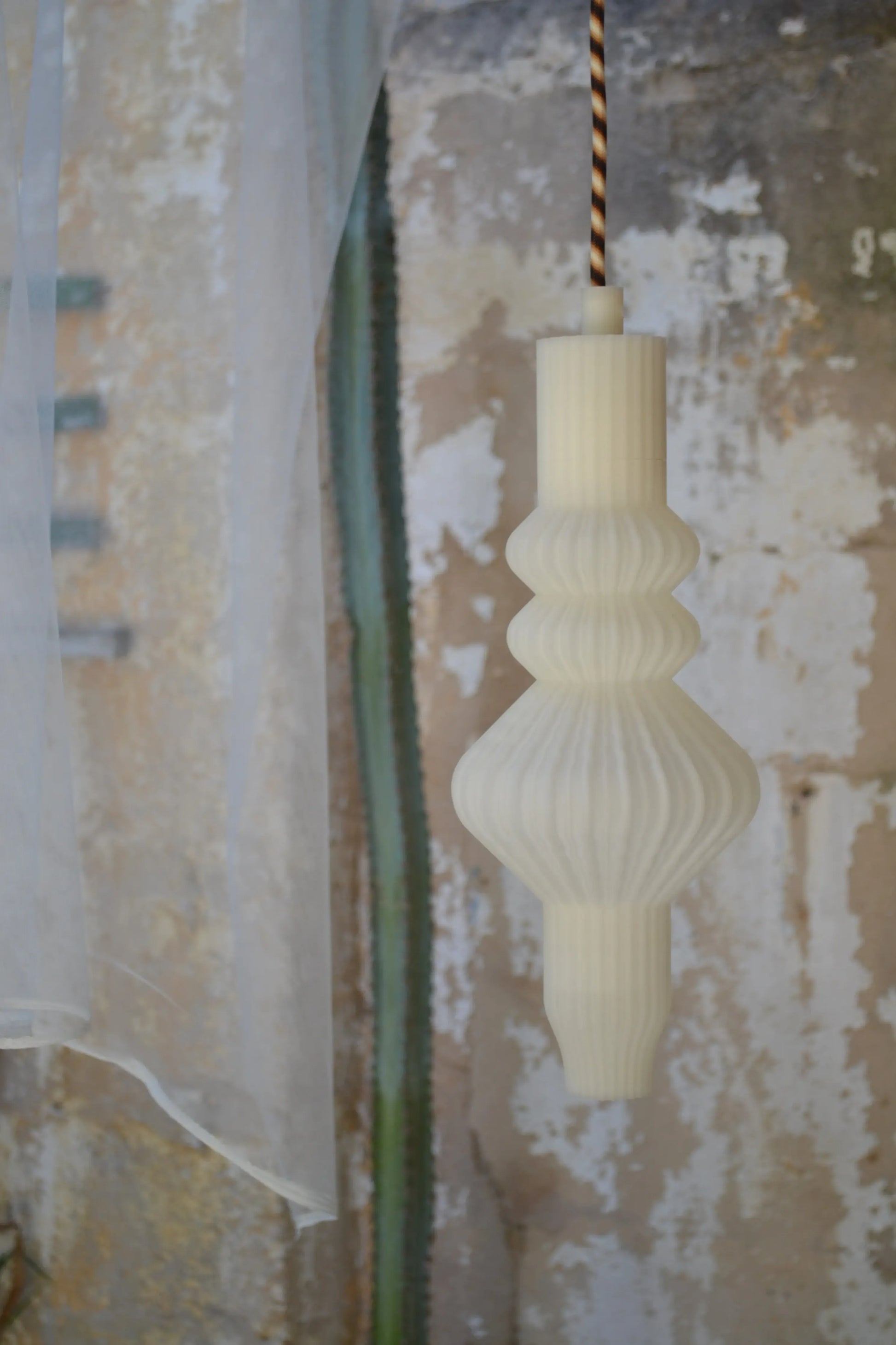 3D printed wall light with PLA (a biomaterial based on corn and/or wheat starch) and recycled organic or mineral residues.